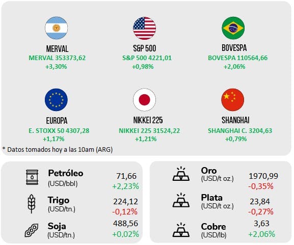 Este reporte tiene el solo propósito de brindar información, y en él solo se vierten opiniones respecto de las cuales el usuario o cliente podrá estar o no de acuerdo. Este reporte no constituye una oferta o recomendación de compra o venta de los instrumentos financieros mencionados. Asimismo, este reporte no tiene en cuenta los objetivos de inversión y/o la situación financiera de ninguna persona en particular, y por lo tanto los instrumentos mencionados en el mismo podrían no ser adecuados para su perfil de inversor. Los asesores financieros relacionados a invertirOnline.com pueden ofrecer sus opiniones o perspectivas concernientes a lo apropiado de la naturaleza de determinadas estrategias de inversión; sin embargo, es finalmente el usuario o cliente el responsable último de las decisiones de inversión que adopta, debiendo estar tales decisiones basadas únicamente en sus circunstancias económicas, objetivos financieros, tolerancia al riesgo y necesidades de liquidez personales. Las inversiones en activos financieros y otros productos conllevan riesgos, incluyendo la pérdida de capital significativa. Los riesgos incluyen pero no están limitados a: riesgo de tasa de interés, riesgos de liquidez, de tipo de cambio y el riesgo específico de la empresa y/o sector. Este documento contiene información histórica y prospectiva. Los rendimientos pasados no son garantía o indicativo de resultados futuros. Todos los precios, valores o estimaciones generadas en este reporte (excepto aquellos identificados como históricos) son con fines indicativos. Todos los datos y manifestaciones utilizados en este reporte (incluyendo, sin limitación, expresiones tales como "Compra fuerte”/"Compra"/"Mantener"/"Venta"/"Venta fuerte", etc., en adelante las “Expresiones Bursátiles”) no deben considerarse como recomendación de compra o venta de los instrumentos financieros mencionados. Las Expresiones Bursátiles son manifestaciones o expresiones de uso habitual en el mercado bursátil, que responden a estimaciones respecto a valores mínimos y/o máximos de un determinado papel o instrumento, por lo cual no pueden considerarse bajo ningún concepto recomendaciones o llamados a la acción de operar un determinado papel. Todo lo establecido en este reporte, está basado en fuentes que se consideran confiables y de buena fe, pero no implican garantía implícita ni explícita de su precisión y completitud.