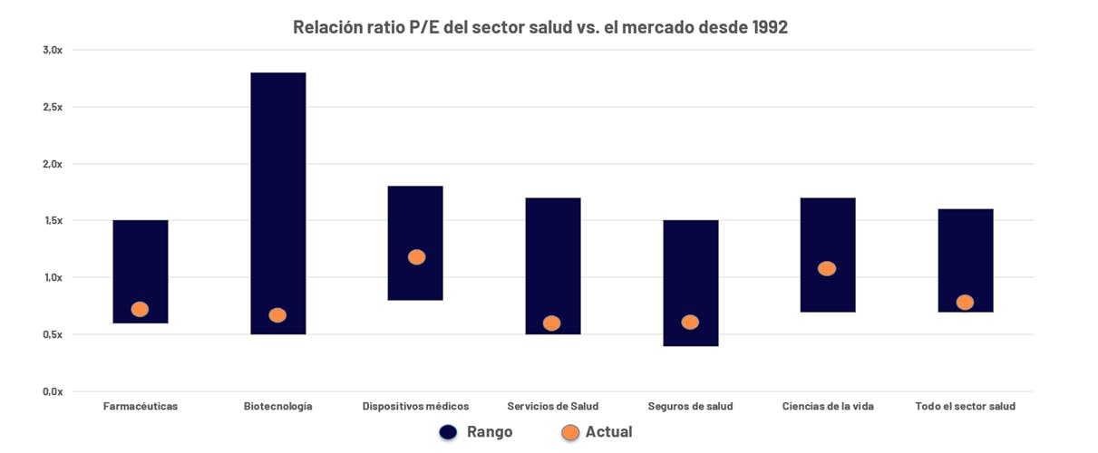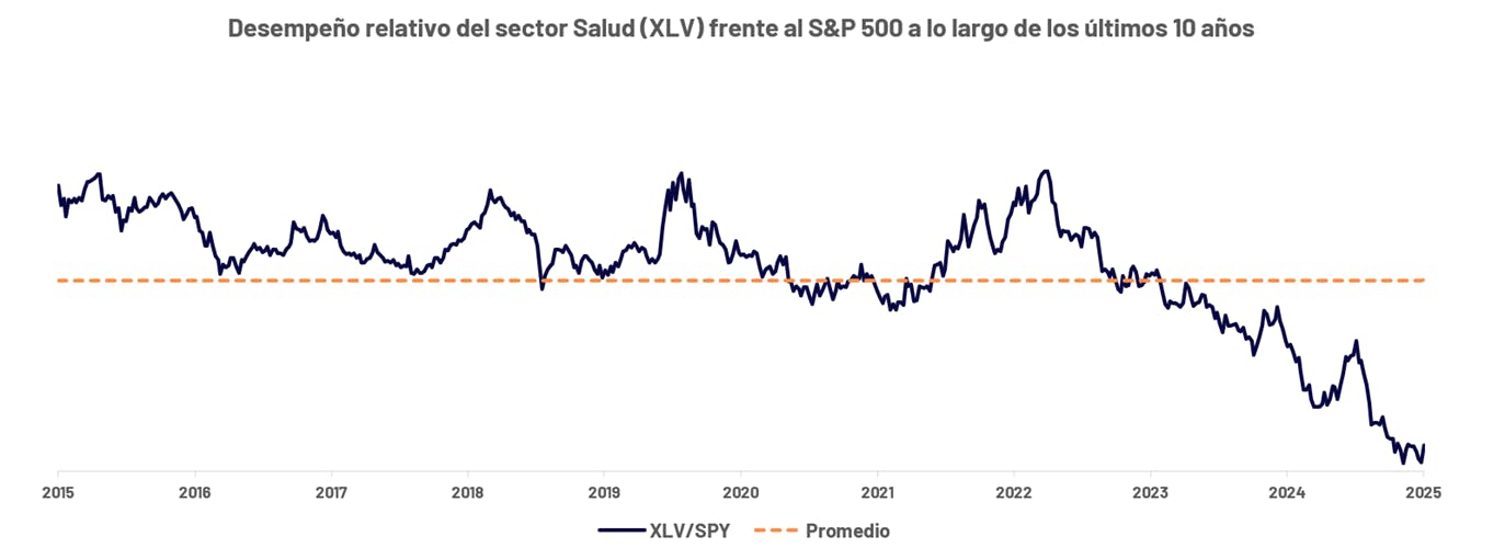 Como muestra el gráfico anterior, las valuaciones se ubican hoy en niveles cercanos a mínimos históricos. Y si bien este tipo de desajustes puede prolongarse en el tiempo, identificamos dos catalizadores recientes que abren una oportunidad para volver a posicionarse en salud, configurando un posible punto de inflexión capaz de revertir la prolongada tendencia negativa del sector.