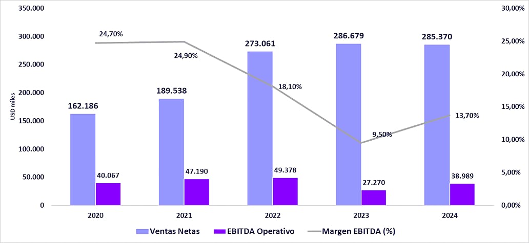 - Recuperación de ventas y márgenes: Pese a la sequía 2022-2023, se espera que mejoras climáticas y operativas recuperen márgenes de EBITDA históricos, superando el 20%.