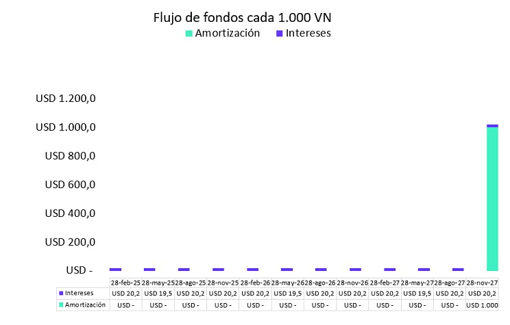 La ON será emitida a 36 meses con pago del capital al vencimiento y pagará cupones en las siguientes fechas: