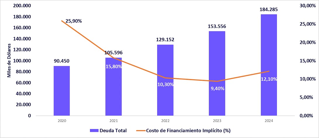 - A junio 2024, la deuda alcanzó USD 184 millones, de la misma, USD 23 millones corresponden a deuda con relacionadas arrojando una relación Deuda Neta/EBITDA de 3,1x y un EBITDA/Intereses financieros de 2,0x. Aunque la deuda total ha incrementado en términos absolutos, el índice deuda/EBITDA se mantiene en un nivel manejable, y la compañía espera seguir fortaleciendo su estructura de capital para reducir el impacto de los costos financieros y mejorar su flujo de caja.
