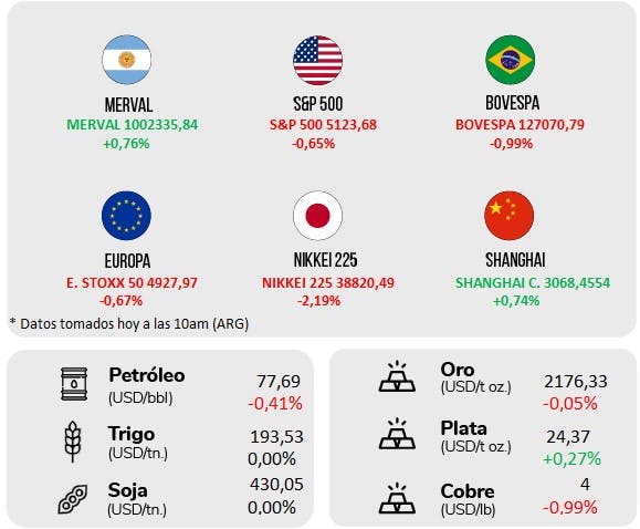 - Las acciones de Coinbase (NASDAQ: COIN) suben un 6,70% en la preapertura, en sintonía con el impulso alcista en el precio de las criptomonedas. Durante el fin de semana, el Bitcoin subió más de un 5% y alcanzó el nivel de los USD 72.000, alcanzando máximos históricos por primera vez desde noviembre de 2021. Por su parte, el resto de las monedas digitales también se comercializaron al alza.
