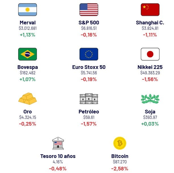 - Los títulos de deuda soberana en dólares mostraron fuertes ganancias, con subidas de hasta el 2,8% lideradas por el Global 2029 (GD29), mientras que el Global 2041 (GD41) y el Global 2035 (GD35) también registraron alzas significativas. En este contexto positivo, el índice de riesgo país medido por J.P. Morgan continuó su tendencia a la baja, ubicándose en los 602 puntos básicos.