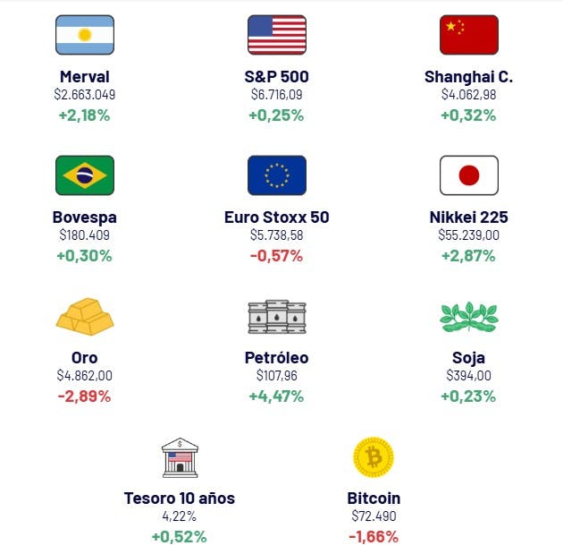 - Los precios del petróleo de referencia global subieron este miércoles, revirtiendo las caídas registradas al inicio de la jornada. Este repunte se debe a que los inversores mantienen su preocupación por las posibles interrupciones en el suministro causadas por el conflicto entre Estados Unidos e Israel contra Irán. Por su parte, en estos momentos, el barril de crudo Brent se comercializa en el nivel de los USD 97,23, mientras que el de Texas se negocia en los USD 108,15.