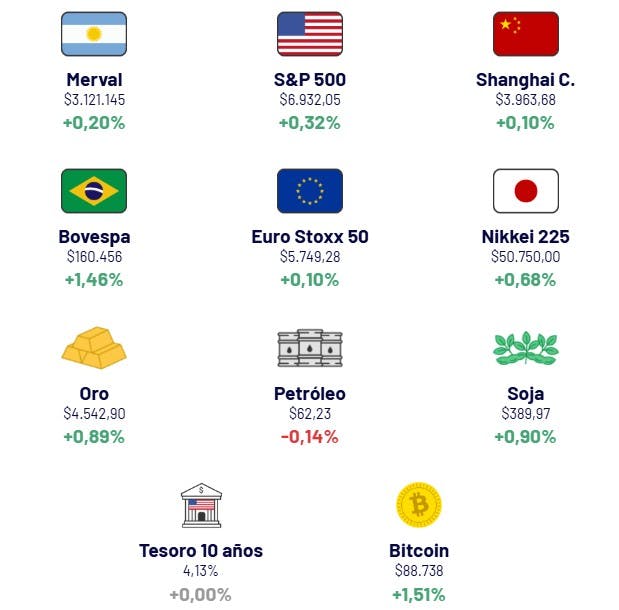 - El oro y la plata alcanzaron nuevos máximos históricos este viernes debido a que los inversores se refugiaron en estos activos en parte por el debilitamiento del dólar durante el 2025. El oro alcanzó un récord histórico de 4.512 dólares la onza tras subir un 0,65%. Por su parte, la plata al contado marcó nuevos récords con un incremento del 3,28% para negociarse en los 74,07 dólares.