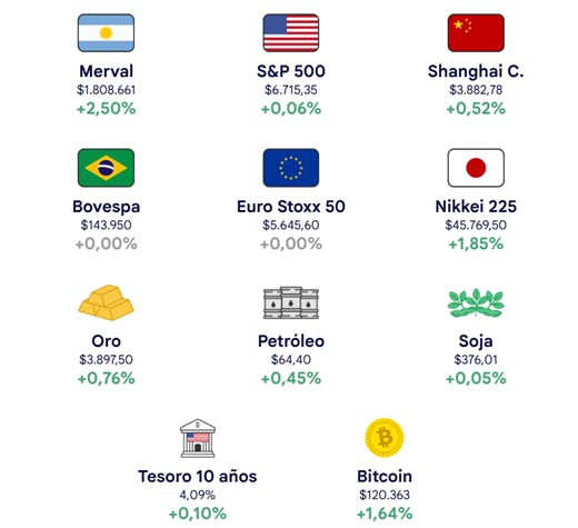 - El Gobierno lanzó un canje de deuda en pesos por hasta US$ 4.000 millones, oficializado este viernes en el Boletín Oficial. El esquema permitirá que el BCRA entregue sus tenencias de los bonos en pesos BONCAP T17O5 y LECAP S31O5, recibiendo a cambio una canasta de cinco nuevos instrumentos vinculados al dólar (20% de cada uno). La medida busca darle al Central mayor poder de fuego para intervenir en el mercado cambiario.