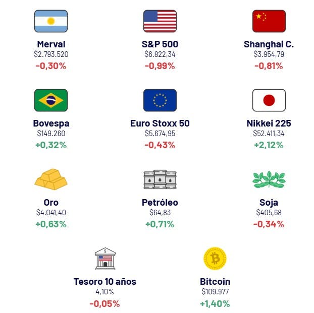 - El S&P Merval cayó un -0,30% en la última jornada hábil, cerrando en 2.793.519. Las mayores alzas de la sesión fueron TXAR (+2,85%), BYMA (+2,76%), GGAL (+1,46%). Por otra parte, las mayores bajas de la sesión fueron EDN (-3,47%), CRES (-3,10%), TGSU2 (-2,98%).