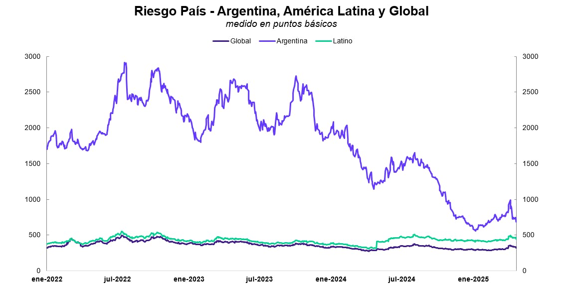 - Un factor clave detrás del éxito inicial del programa es el fuerte respaldo político y económico de Estados Unidos. El apoyo norteamericano fue determinante tanto para destrabar los desembolsos extraordinarios como para flexibilizar algunas exigencias técnicas del acuerdo. De hecho, el BID también comprometió un paquete de hasta US$ 10.000 millones para los próximos años, en línea con el aval político de Washington. A este apoyo se suman recientes declaraciones del secretario del Tesoro de EE.UU., Scott Bessent, quien señaló que la administración Trump estaría dispuesta a ofrecer a Argentina una línea de crédito específica a través del Fondo de Estabilización Cambiaria en caso de que una crisis externa inesperada ponga en riesgo el programa económico. Aunque por ahora no existe un compromiso formal, el hecho de que EE.UU. esté dispuesto a considerar una asistencia adicional refleja la profundización de los lazos bilaterales y aporta un seguro adicional que mejora la percepción de riesgo sobre Argentina. Esta combinación de factores refuerza las expectativas de normalización financiera y genera un marco más favorable para la deuda soberana argentina, potenciando el atractivo de los activos locales.