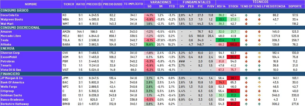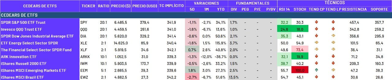 • Para este reporte se tomó como universo los 50 CEDEARs en pesos con mayor volumen promedio operado en las últimas 30 ruedas.