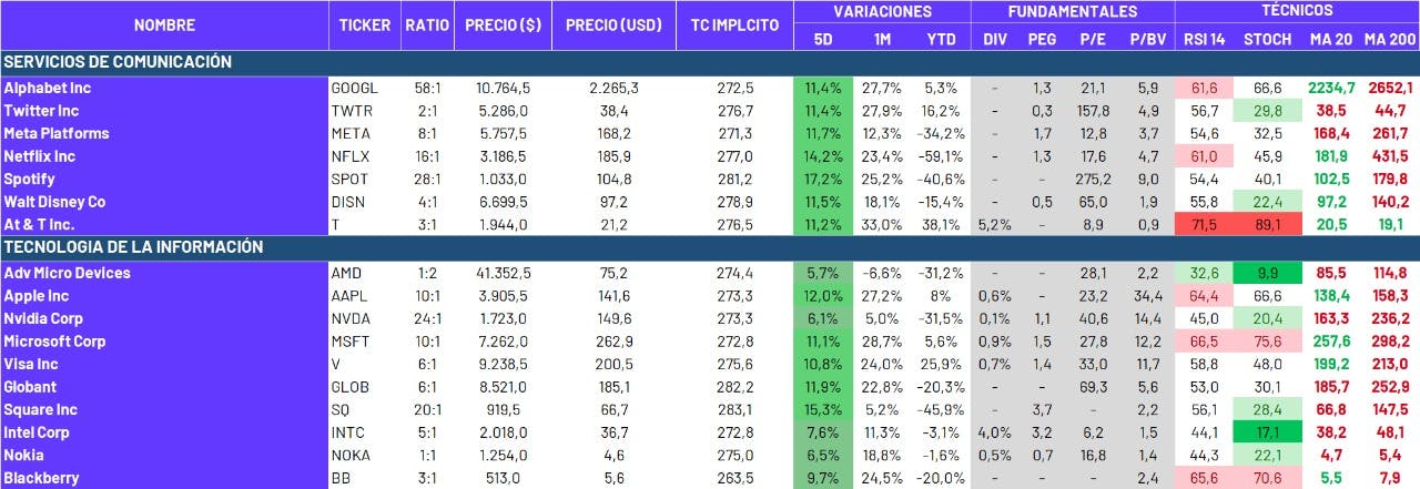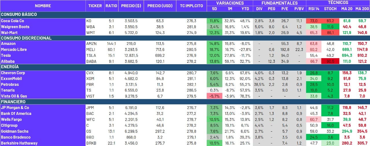 • Para este reporte se tomó como universo los 50 CEDEARs en pesos con mayor volumen promedio operado en las últimas 30 ruedas.