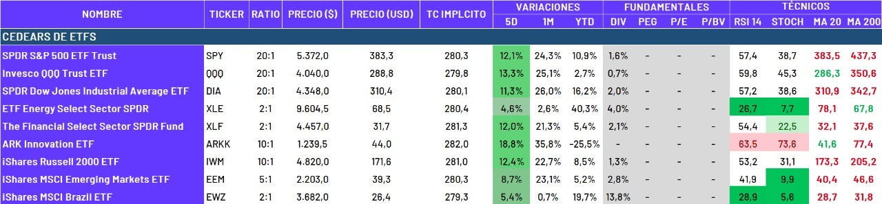 A partir de ahora, también brindaremos información acerca de los principales CEDEARs de ETFs que fueron incluidos para operar en el mercado bursátil argentino.