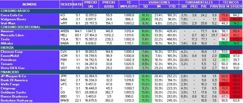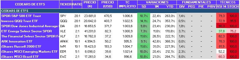 • Para este reporte se tomó como universo los 50 CEDEARs en pesos con mayor volumen promedio operado en las últimas 30 ruedas.