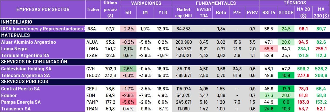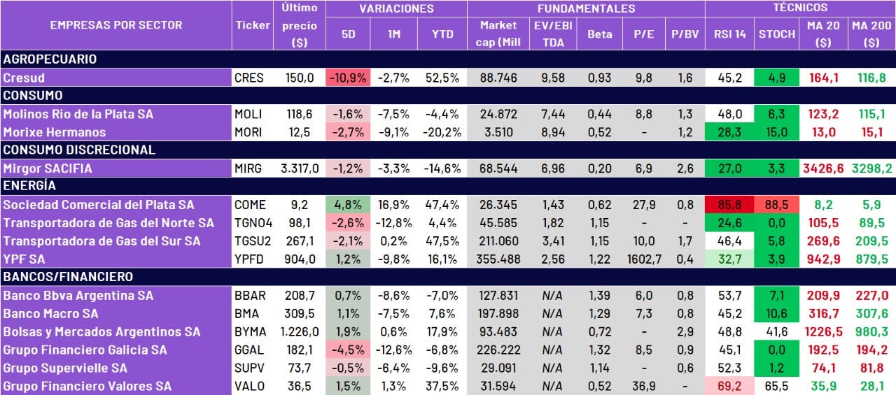 • Para este reporte se tomó como universo las principales acciones argentinas