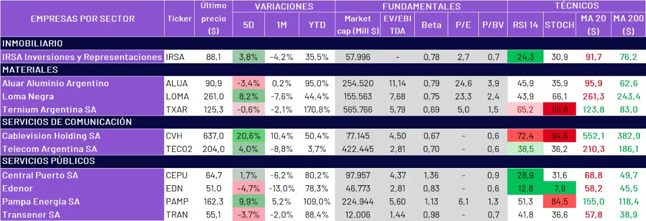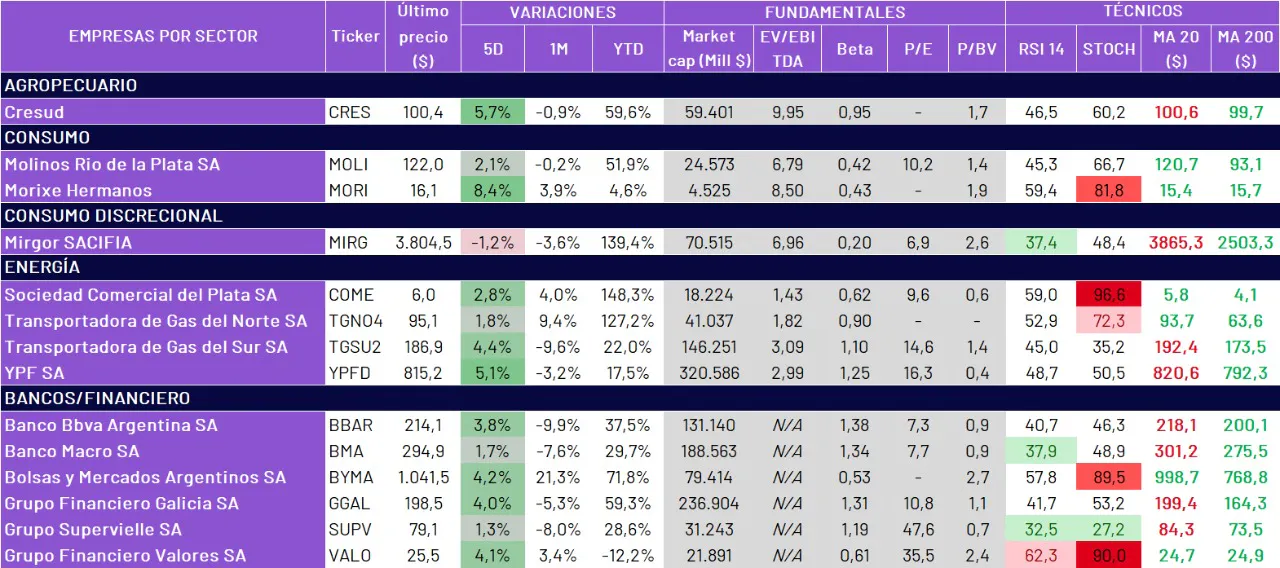 • Para este reporte se tomó como universo las principales acciones argentinas