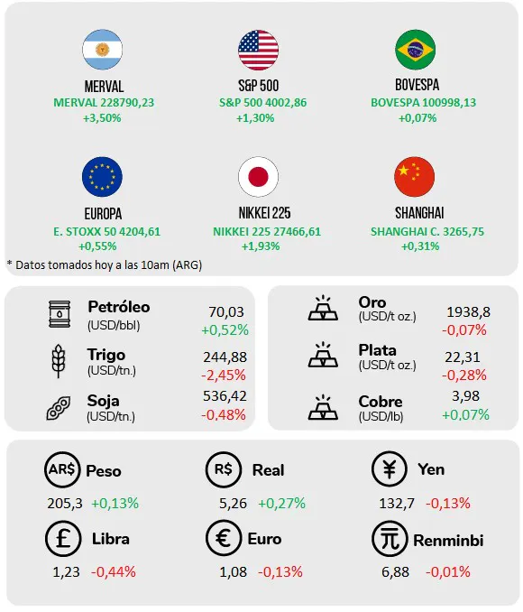 - El Ministerio de Economía anunció este martes una serie de medidas para reducir la presión sobre los dólares financieros, que incluye un canje de USD 4.000M en bonos bajo ley extranjera (globales o GD) que se encuentran en poder de organismos del sector público nacional por títulos en pesos y la incorporación de los bonos en dólares bajo ley local (bonares o AL) en la operatoria de dólar CCL.