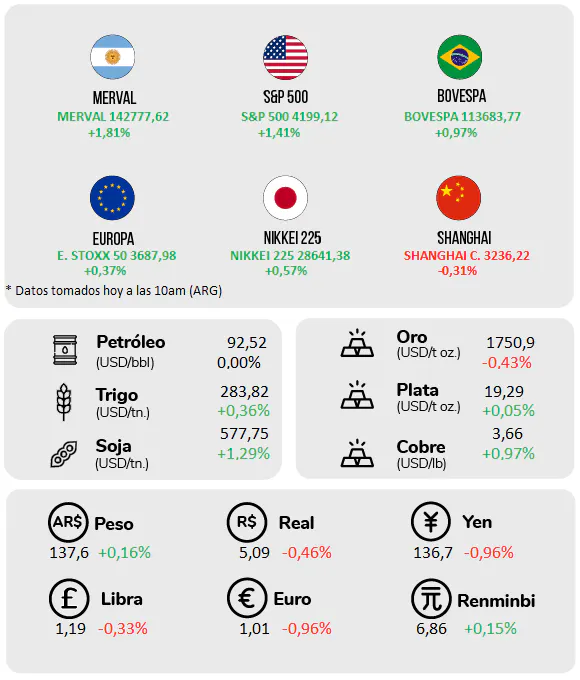 - El titular de la Reserva Federal de los Estados Unidos (Fed), Jerome Powell, brindará una conferencia este viernes en el marco del simposio anual de Jackson Hole. El mercado estará expectante a estas declaraciones, donde se espera que el funcionario de a conocer más pistas sobre el rumbo que tomará la Fed para equilibrar la lucha contra la inflación y el menor impacto sobre el crecimiento económico.