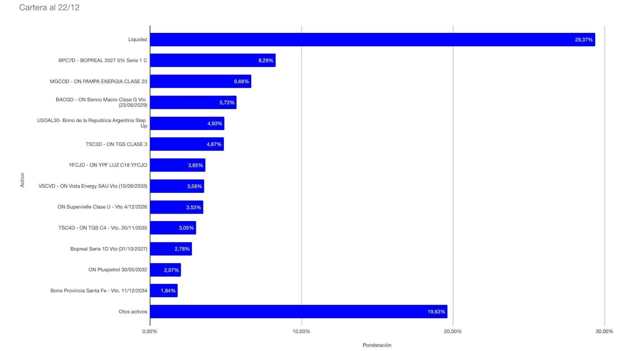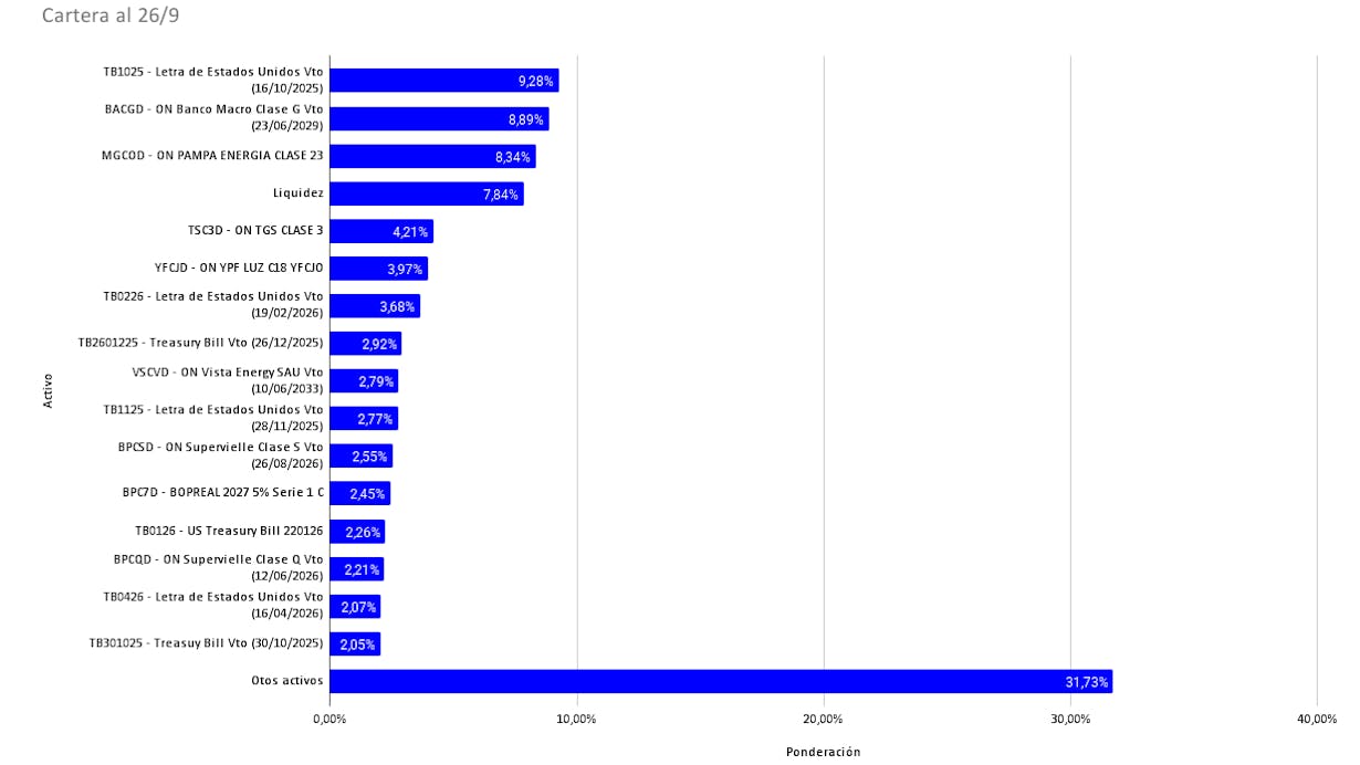 El fondo estará compuesto en un principio por Obligaciones negociables hard dollar (MEP), que cuenten con una sólida calidad crediticia, atractivos rendimientos, y baja volatilidad.